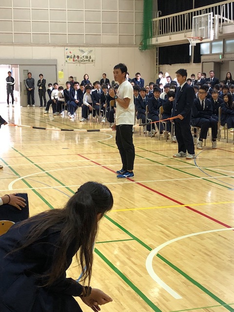 11月2日、北京五輪400メートルリレー日本代表の堀籠 佳宏選手をお迎えし、夢・未来プロジェクトを開催しました。全校講演会にくわえ、1年生と1組の生徒に実技を交えて「速く走ることができる」技術をご指導いただきました。夢をもつことの大切さと夢を実現してくための心構えを教えていただきました。
