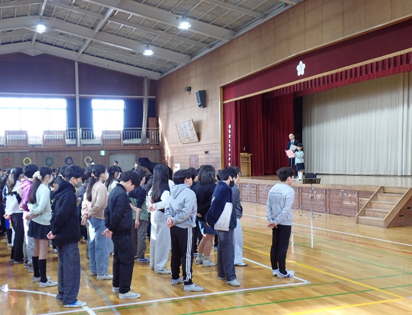 | 新年明けましておめでとうございます。1月8日に第3学期の始業式を行いました。心新たに1年の目標をもって生活していってほしいですね。 |