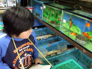| 金魚に興味津々です。 |