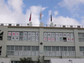 「100周年 気合いを入れてつき進め! 心は一つ玉川小!」 |