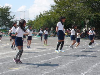 テンポのよいリズムに合わせてなわとびをしながら