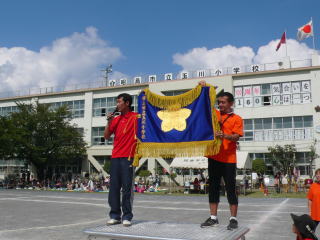 新しい校旗がPTAから寄贈されました |