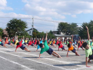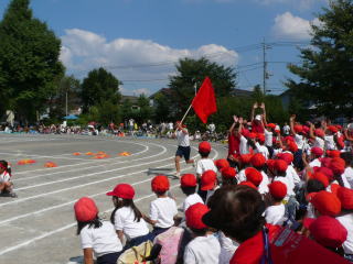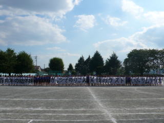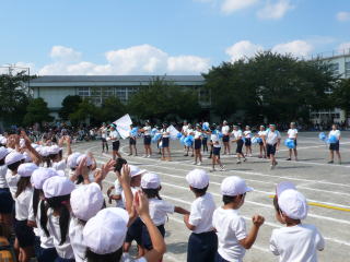 | 大旗に合わせて全校でウエーブをしました |