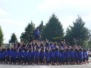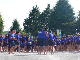 | 第5・6年生による組体操「玉小SAMURAI BLUE!!」 |