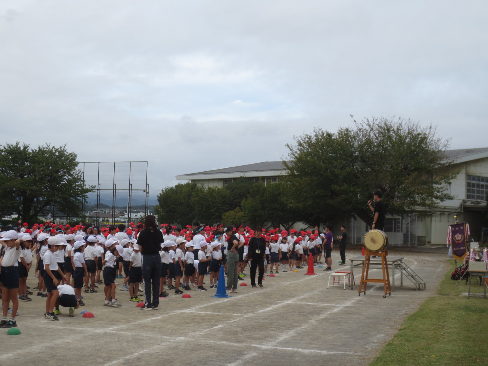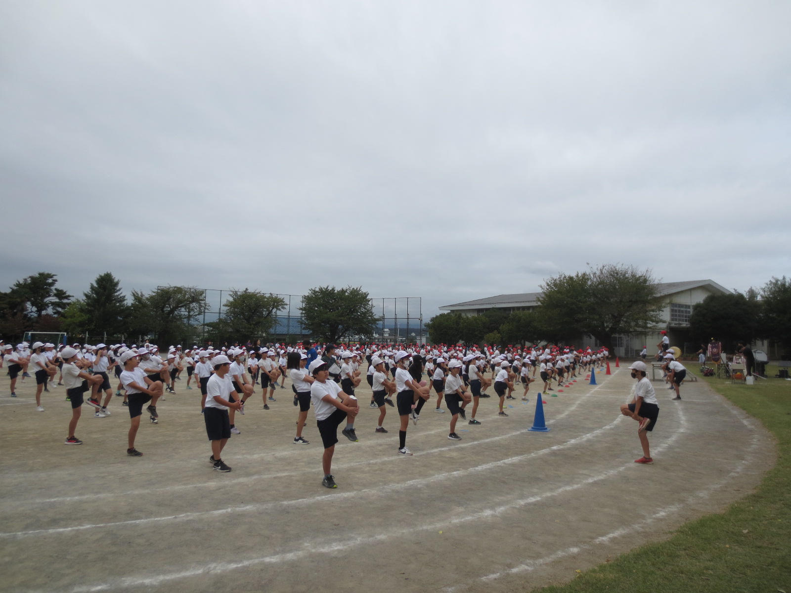 | 10月9日(木)、10月15日(水)に全校で運動会の練習を行いました。開閉会式や準備運動、整理運動、応援の練習を行い、1年生から6年生まで大きな声を出し練習する姿が見られました。 |