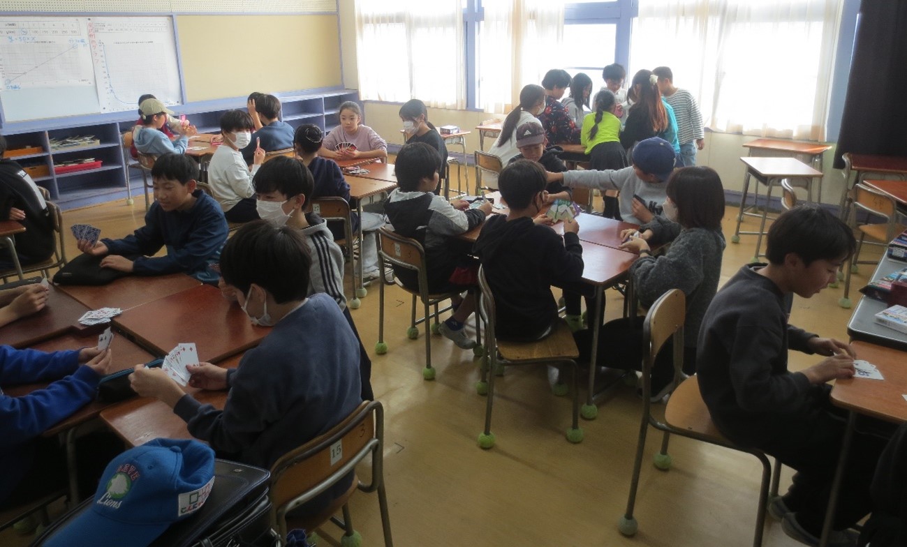 クラブ活動の時間は校舎が賑やかな声で包まれます。「室内遊びクラブ」では、様々な種類のボードゲームやカードゲームを楽しんでいます。